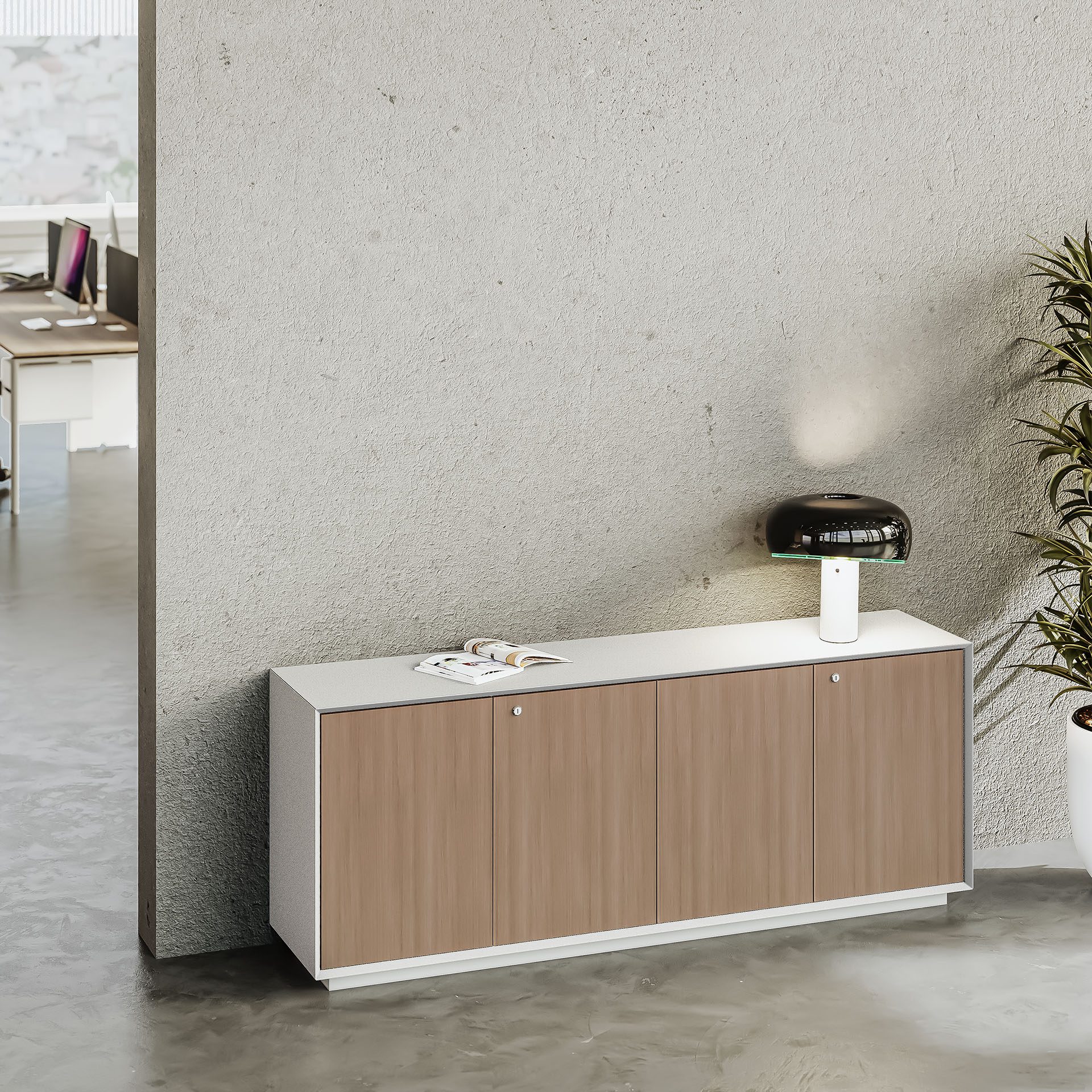 •  4 Hinged door cabinet in melamine finish