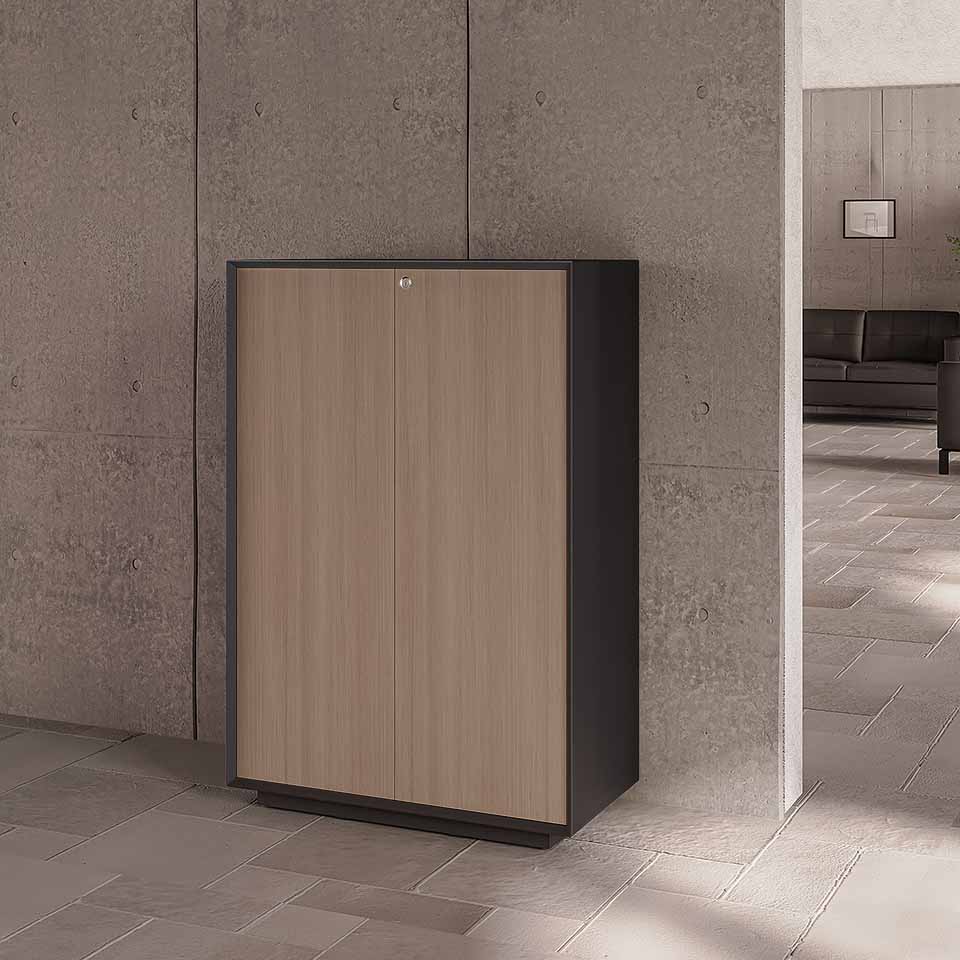 This product belongs to product groups Storage, Sideboards, open base, free-standing, 4-leg base, with hinged doors, Wood, Structure engineered wood.
