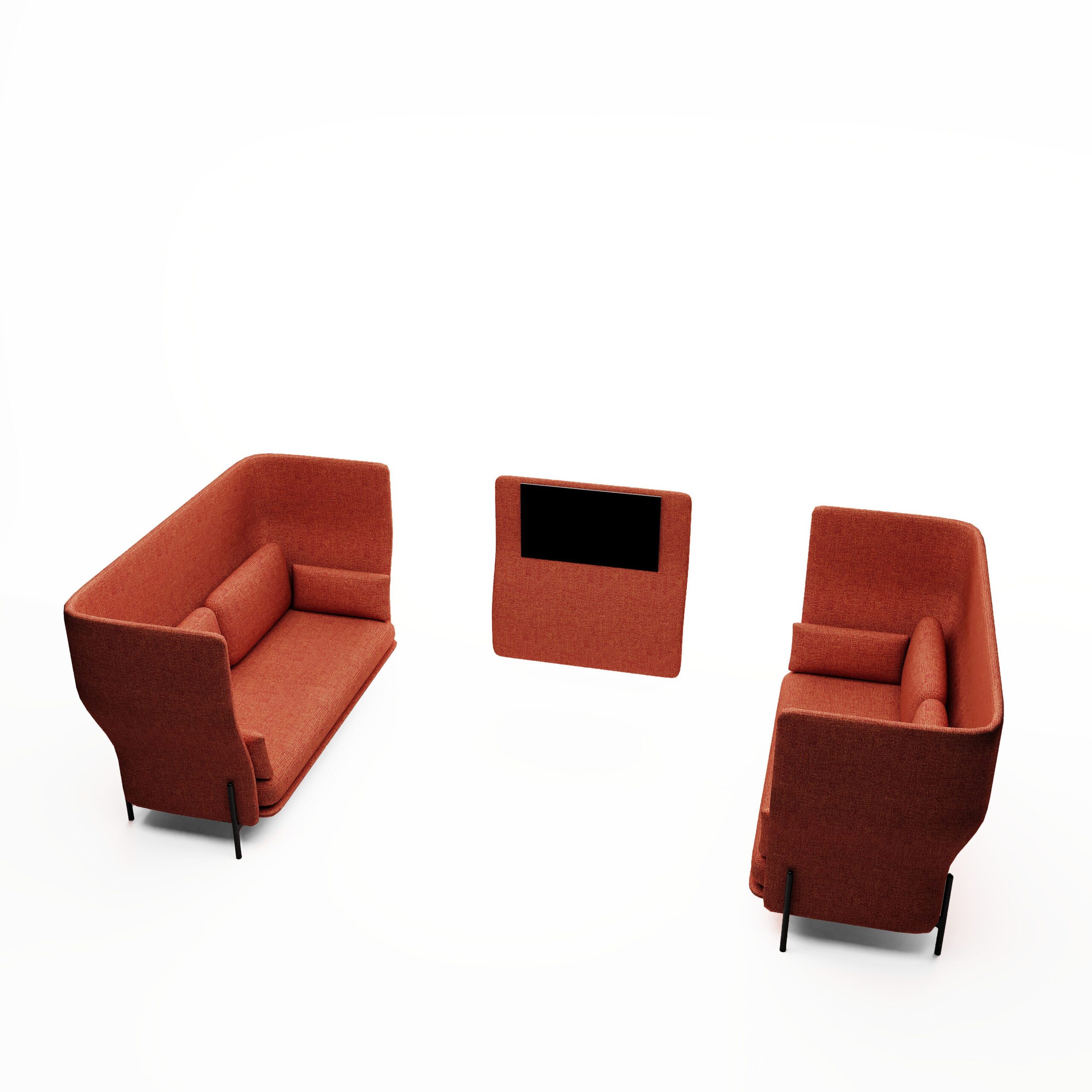 Upholstered modular sofa components. All layouts are to be completed with a component fitted with armrest at each end (see layout examples). It is possible to create layouts fitted with corner components (90° or 135°).